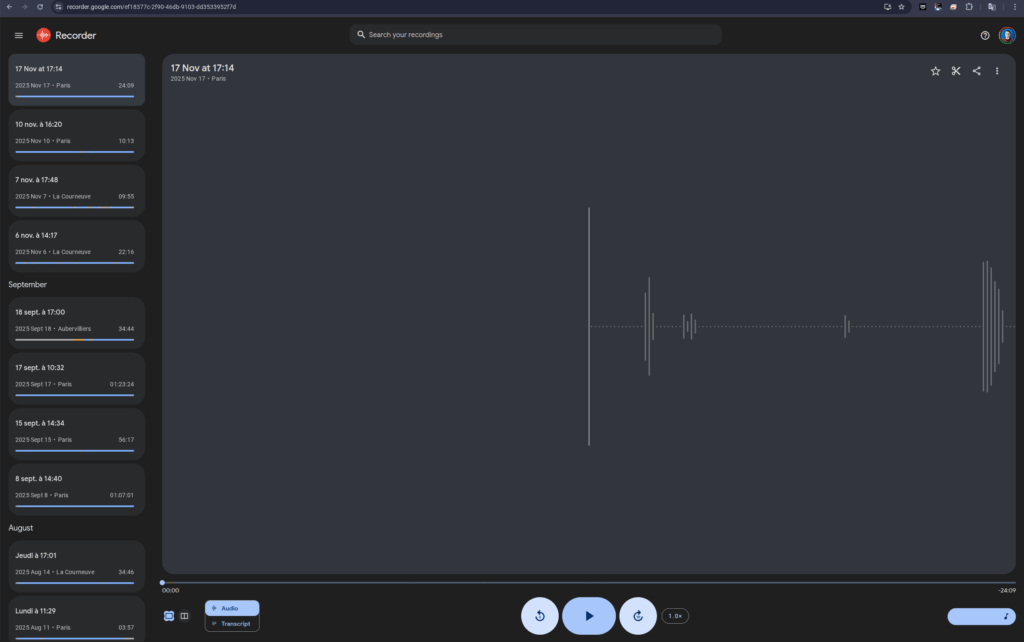In parallel, the same audio was transcribed using Google Recorder on a Pixel smartphone. The Pixel app offers real-time transcription, while PLAUD works after recording. Each approach has benefits depending on the user’s priority.