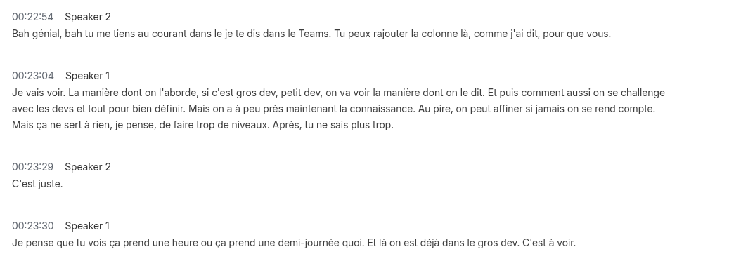 - Clear speaker-separated transcription