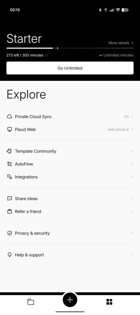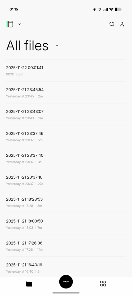 Even though the PLAUD Note comes with a fixed internal memory, storage is rarely a limitation thanks to its unlimited cloud synchronization. As soon as a recording is uploaded to the PLAUD cloud, it is safely stored online and no longer occupies local space. While it is possible to export audio files from the PLAUD cloud, it is not possible to export recordings directly from the device without using the cloud. In practice this isn’t an issue: with the high transfer speed offered by Fast Transfer, even multi-hour recordings upload quickly and seamlessly.
